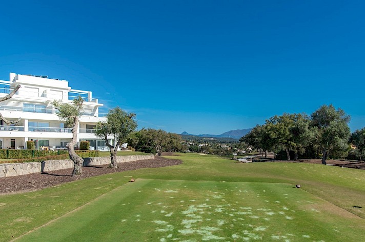 Enjoy indoor/outdoor living in this never lived in luxury apartment overlooking the esteemed old course of San Roque Club and the Mediterranean Sea.