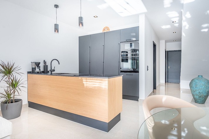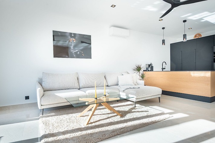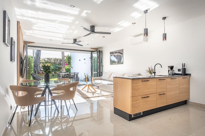 Perfectly positioned frontline to the golf course, this home boasts an open-plan living space with bifolding patio doors that seamlessly connect the interior to the terrace and garden, creating an inviting and airy ambiance.