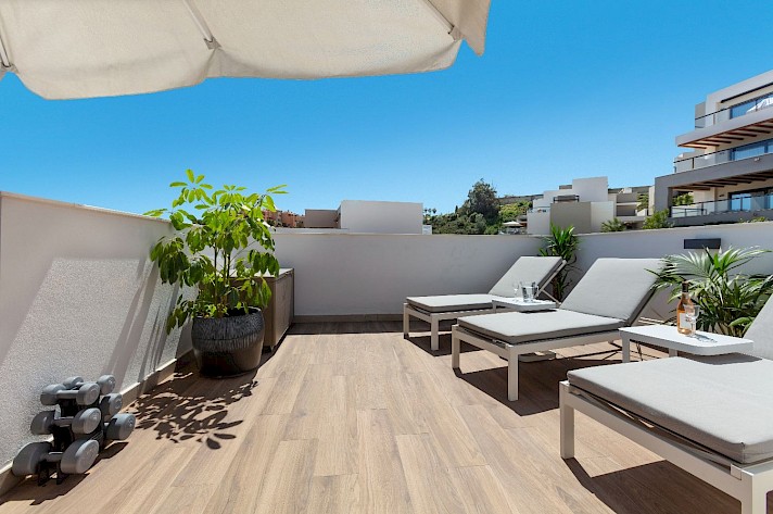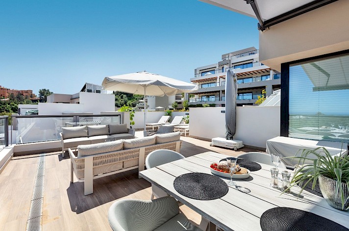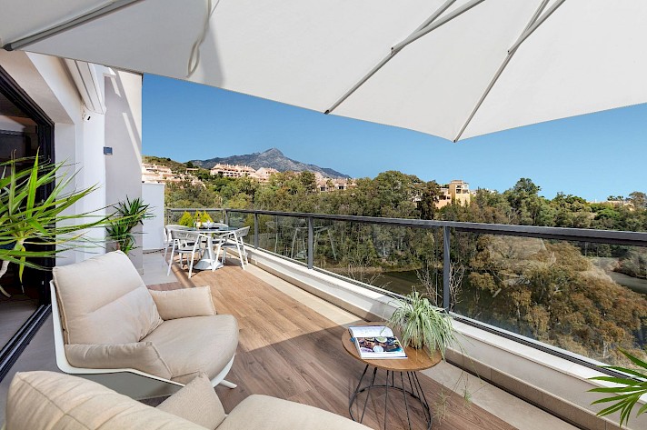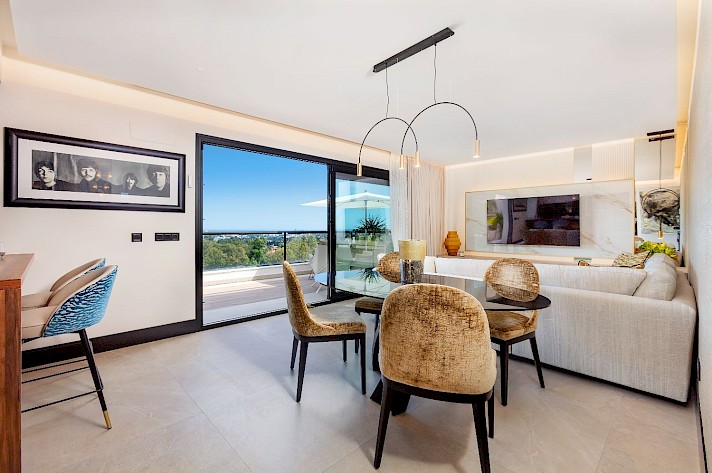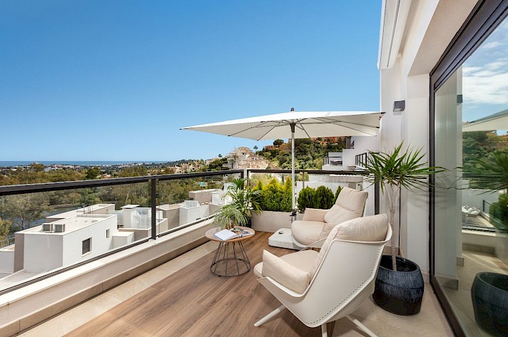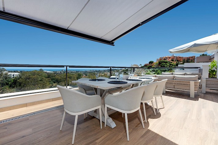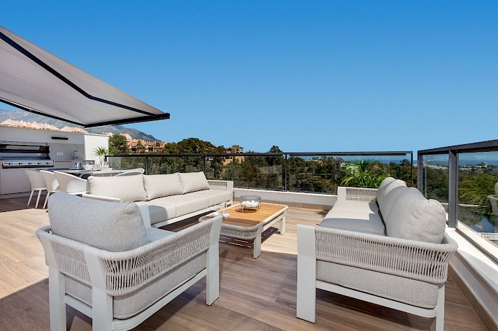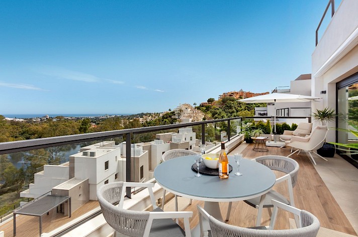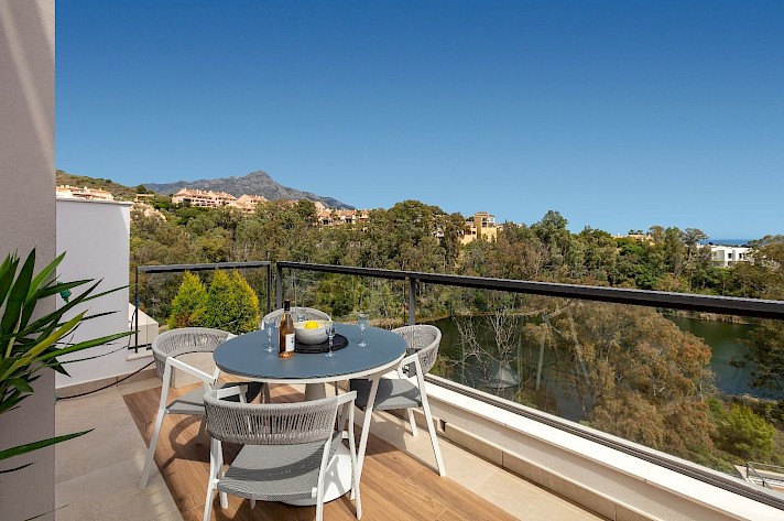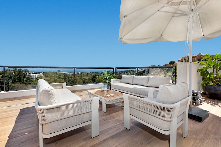 Discover this exceptional 3-bedroom, 2-bathroom apartment, perfectly located in vibrant Nueva Andalucía in La Cerquilla - Designed to showcase stunning views, it features an expansive rooftop terrace with sweeping panoramas of serene lakes, majestic mountains, and incredible views of the Mediterranean Sea.
